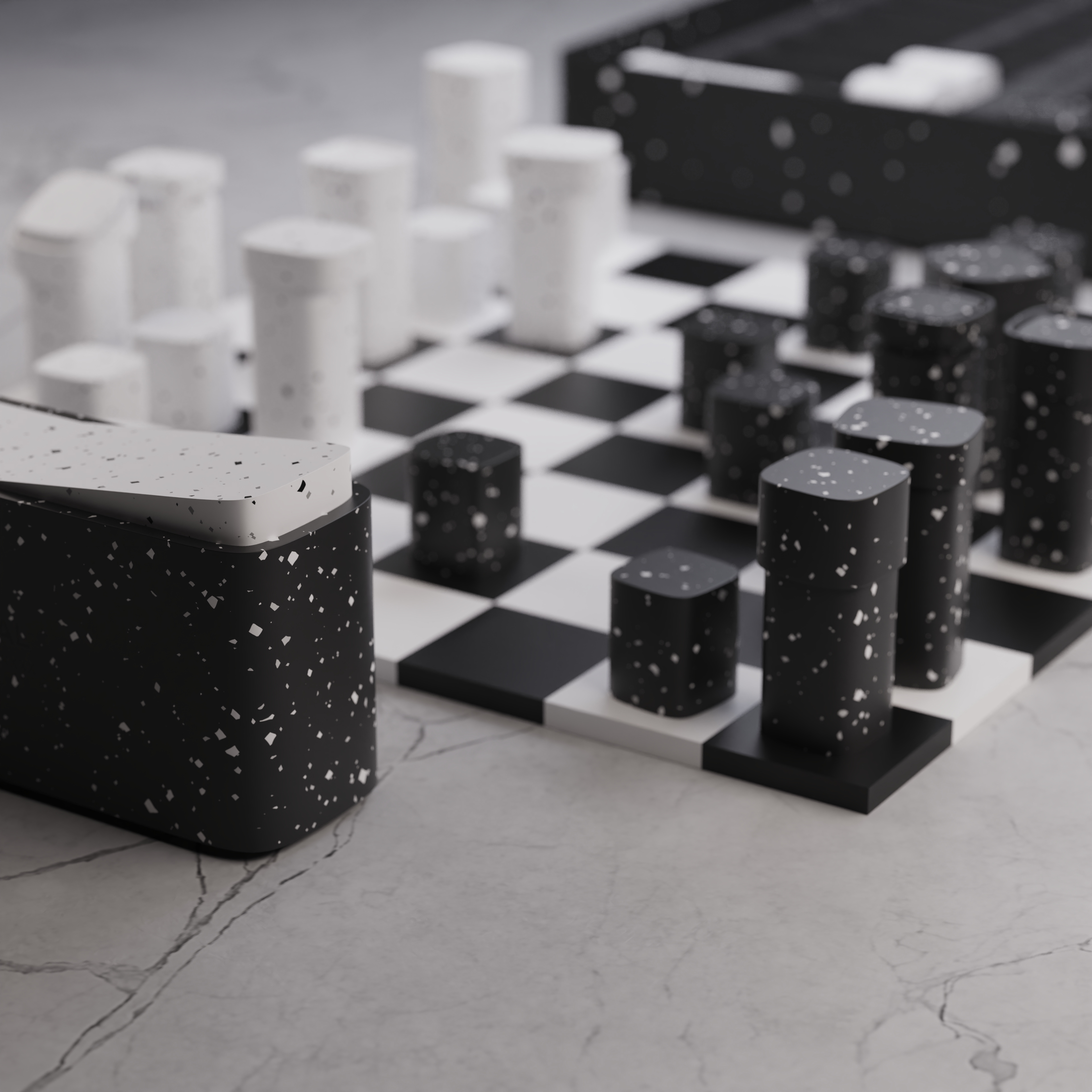 is a minimalist version of the chess game. Each piece is carefully crafted to its single expression and movement.