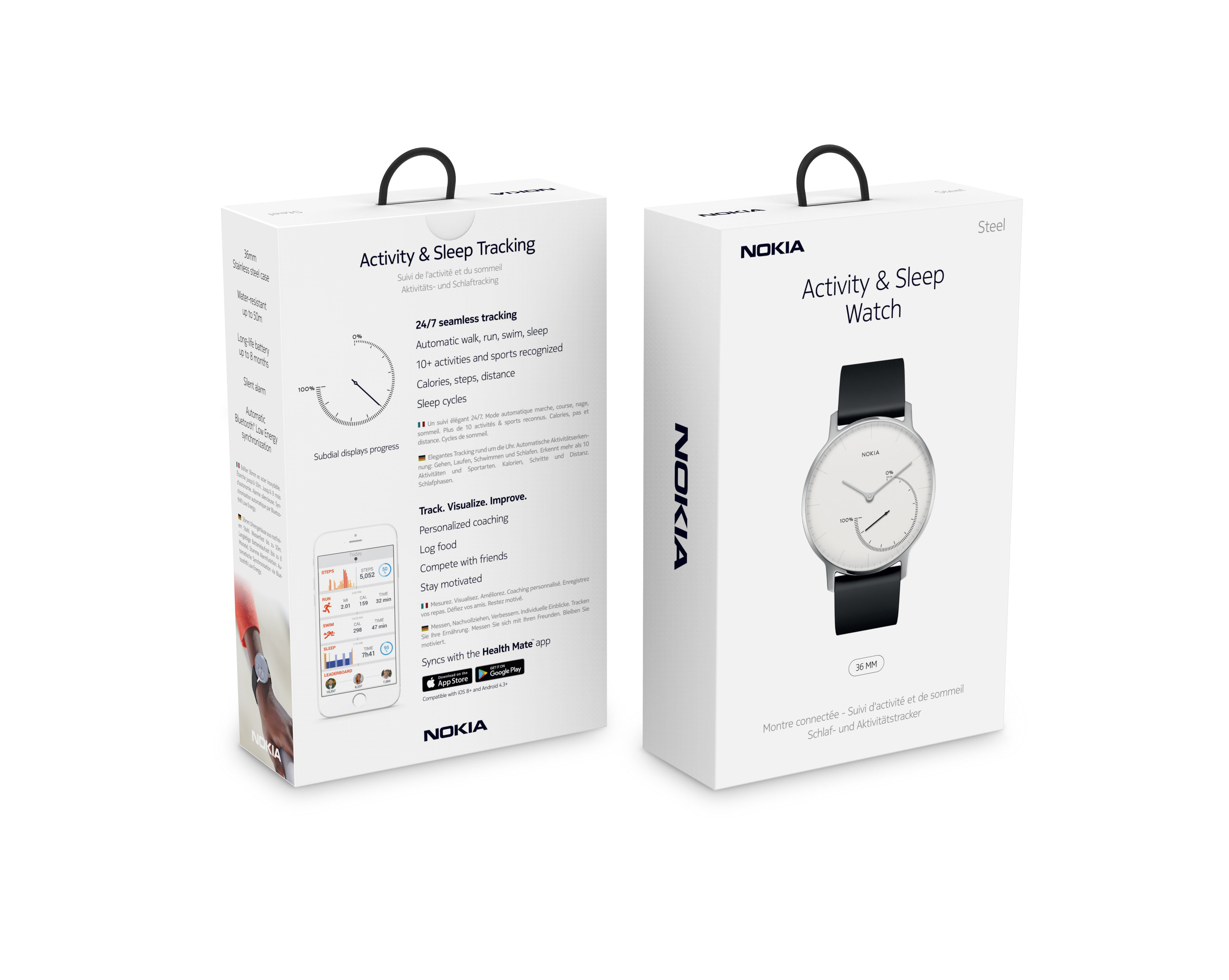 Under the supervision of Axel Meyer, together with Erich Martino, we redesigned the complete range of Withings products’ packaging. The main challenge was to be consistent within the size of the pack that varies from a watch packaging to a scale packaging.